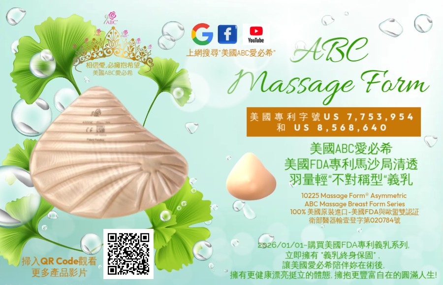 美國ABC愛必希義乳American Breast Care Mastectomy bras and breast forms ( ABC prosthesis and mastectomy bras),提供姐妹們在乳癌術後的康復期/呵護期,所需特殊照顧的貼心商品系列 ~ 乳癌術後康復期/呵護期,專用Silicone義乳商品。